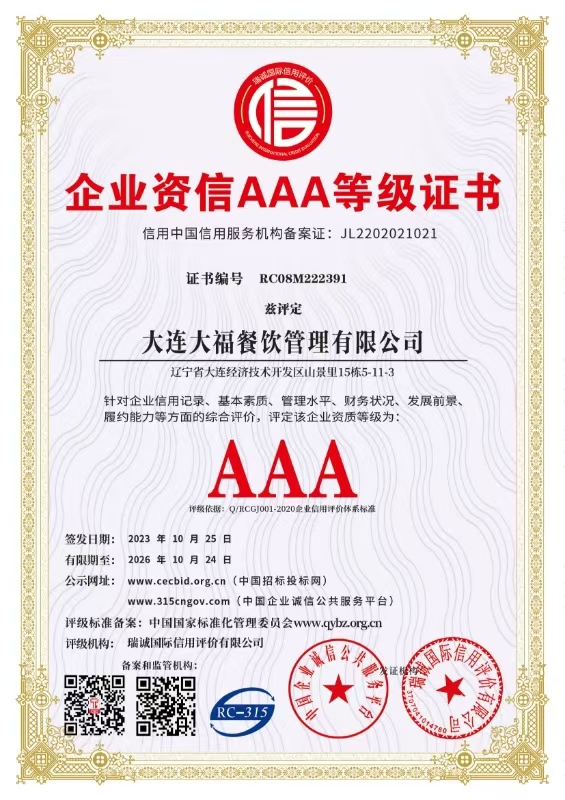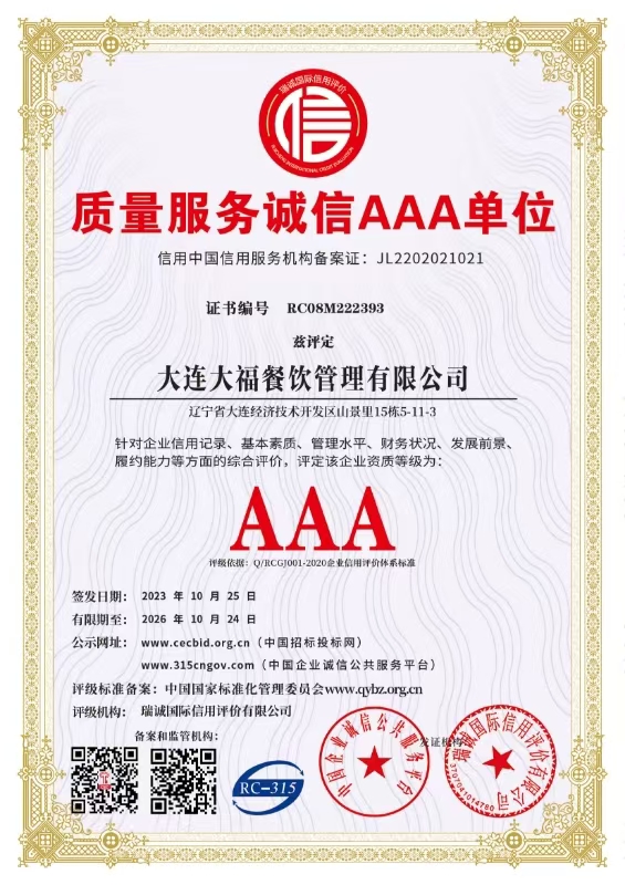 大連大福餐飲管理有限公司系專門從事大型企業團膳服務項目的管理公司。自2005年成立以來,在大連地區積極開展委托管理、配餐、托管、合作經營等多種形式的餐飲服務項目,現已發展成為一家集團膳管理及生鮮蔬菜配送為一體的集團化公司。